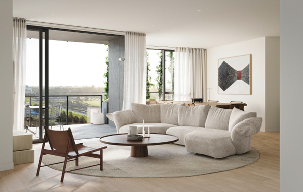 Across one, two and three-bedroom residences, expansive layouts deliver house-like amenity. Generously proportioned kitchens feature integrated breakfast bars and premium appliances, while bedrooms and bathrooms are defined by balance, elegance and thoughtful storage. Premium and Luxury residences are offered in light and dark schemes, expressed through organic materials and layered forms that reference the rhythm of the neighbouring racecourse.